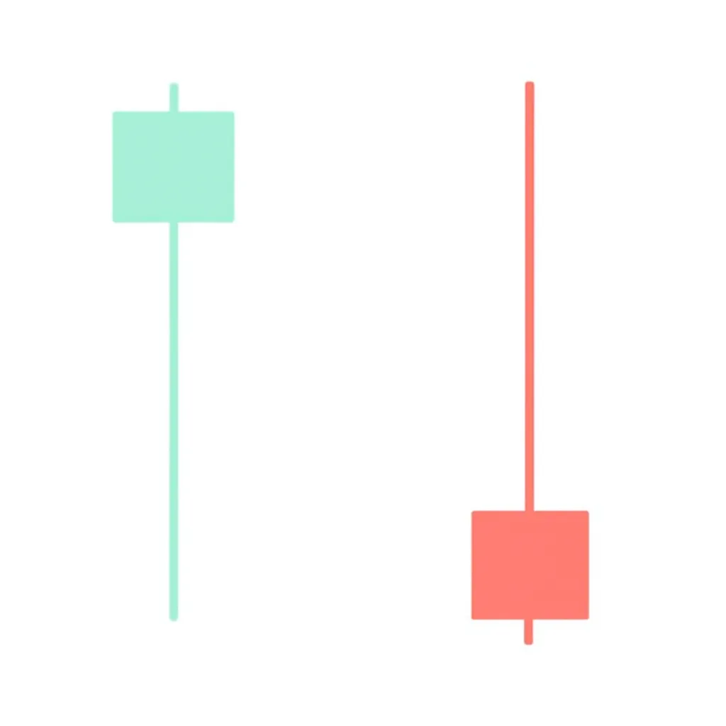 الجسم صغير وقريب من طرف الشمعة المقابل للذيل (أعلى الشمعة في الصعود، أسفلها في الهبوط).