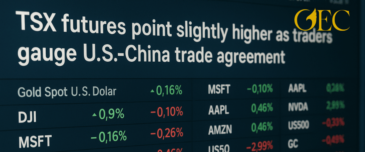 العقود الآجلة لمؤشر TSX ترتفع بشكل طفيف مع تقييم الأسواق للاتفاق التجاري الأميركي الصيني