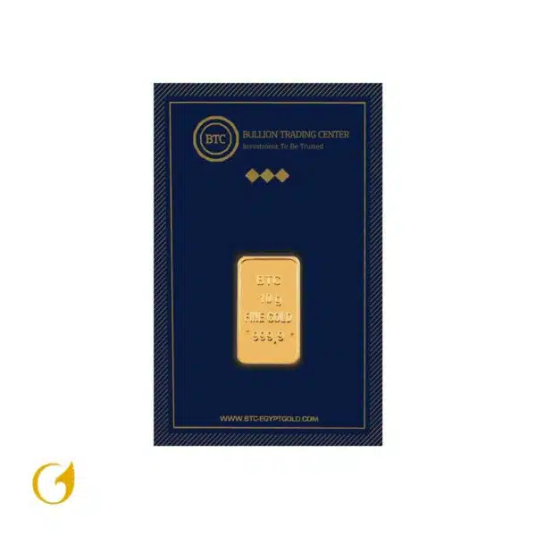 سبيكة BTC الأصلية تأتي مختومة بختم رسمي من الشركة، مع تغليف بلاستيكي محكم، وغالبًا تحتوي على رقم تسلسلي أو شهادة توضح العيار والنقاء. تأكد من الشراء من جهة موثوقة مثل جولد إيجلز لضمان الأصالة.